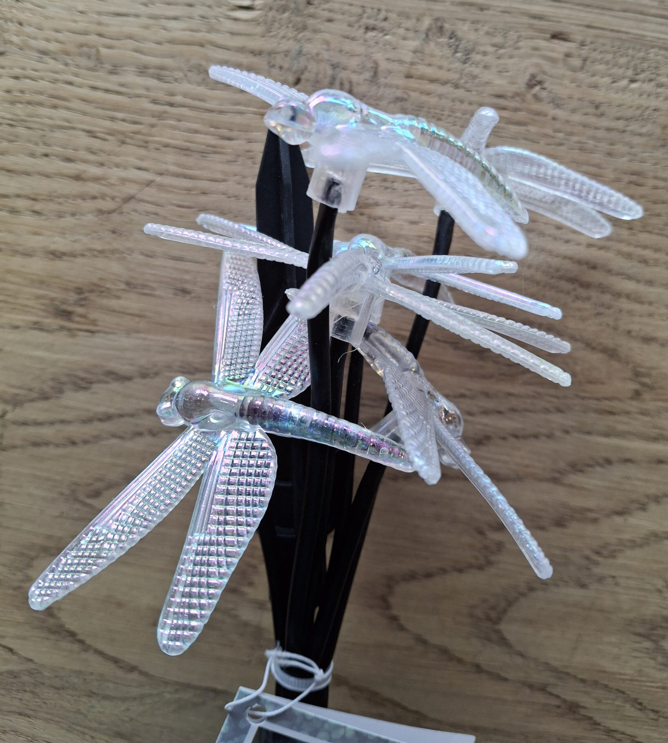 Een mooie solar tuinsteker met 6 libelle-lampjes, die eenvoudig te plaatsen is bij u buiten. De led lampjes zijn in de vorm van vliegende libelles, en geven sfeervolle warm witte verlichting in de avond. De lampjes werken op zonne-energie en zijn dus zeer energiezuinig en laden zichzelf op door de zon overdag. U heeft dus geen omkijken naar deze leuke tuinsteker nadat u deze buiten in de grond gestoken heeft!